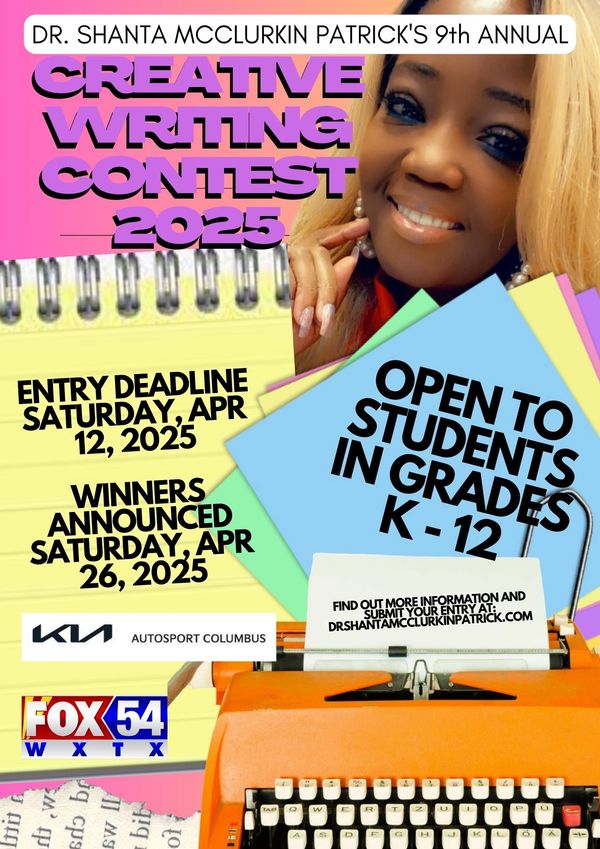What: "Dr. Shanta McClurkin Patrick Creative Writing Contest". We are looking for original, fictional stories from students! Do you enjoy WRITING? Well, it’s YOUR turn to write a fictional story and have the chance to win CASH and PRIZES! In addition, we want you to integrate art into your story by creating up to three (3) original, clear and colorful illustrations that enhance your story. This is a CREATIVE writing contest.
